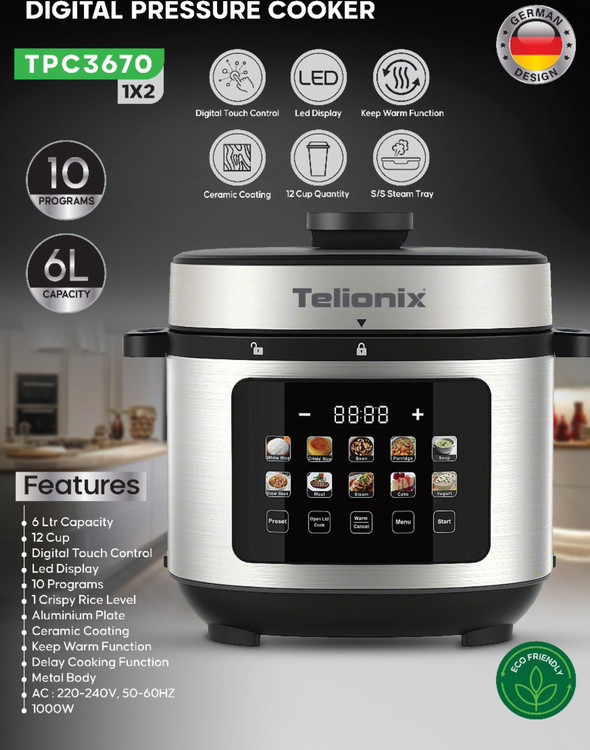 زودپز برقی ۱۰ کاره دیجیتال تلیونیکس مدل TPC3670 (سری Promotional) با گارانتی اصالت و سلامت کالا