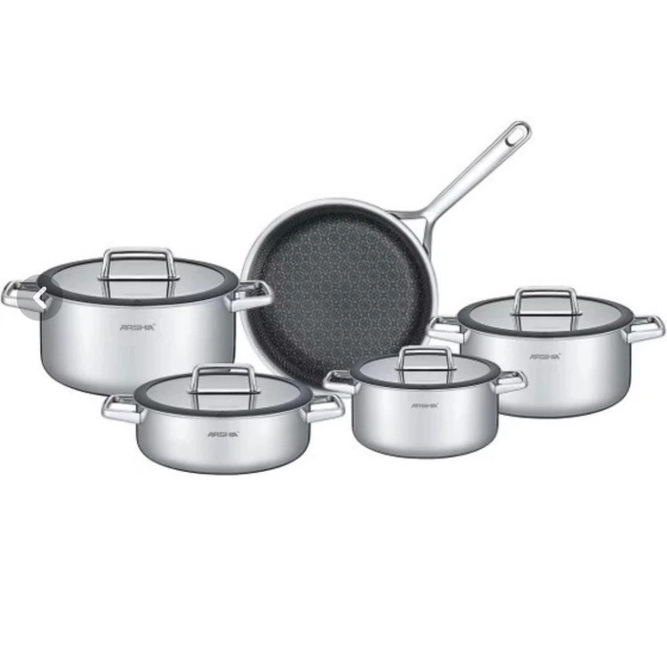 سرویس قابلمه عرشیا مدل SS050-3543 ۹ پارچه استیل کف لیزری